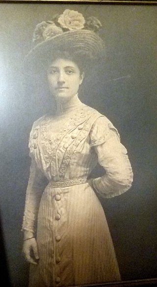 I’ve always loved this photo, right from the time my grandmother first showed it to me when I was a very little girl. The dress! So fancy! The hat! With the flowers! She was so young! And so pretty! And her figure!