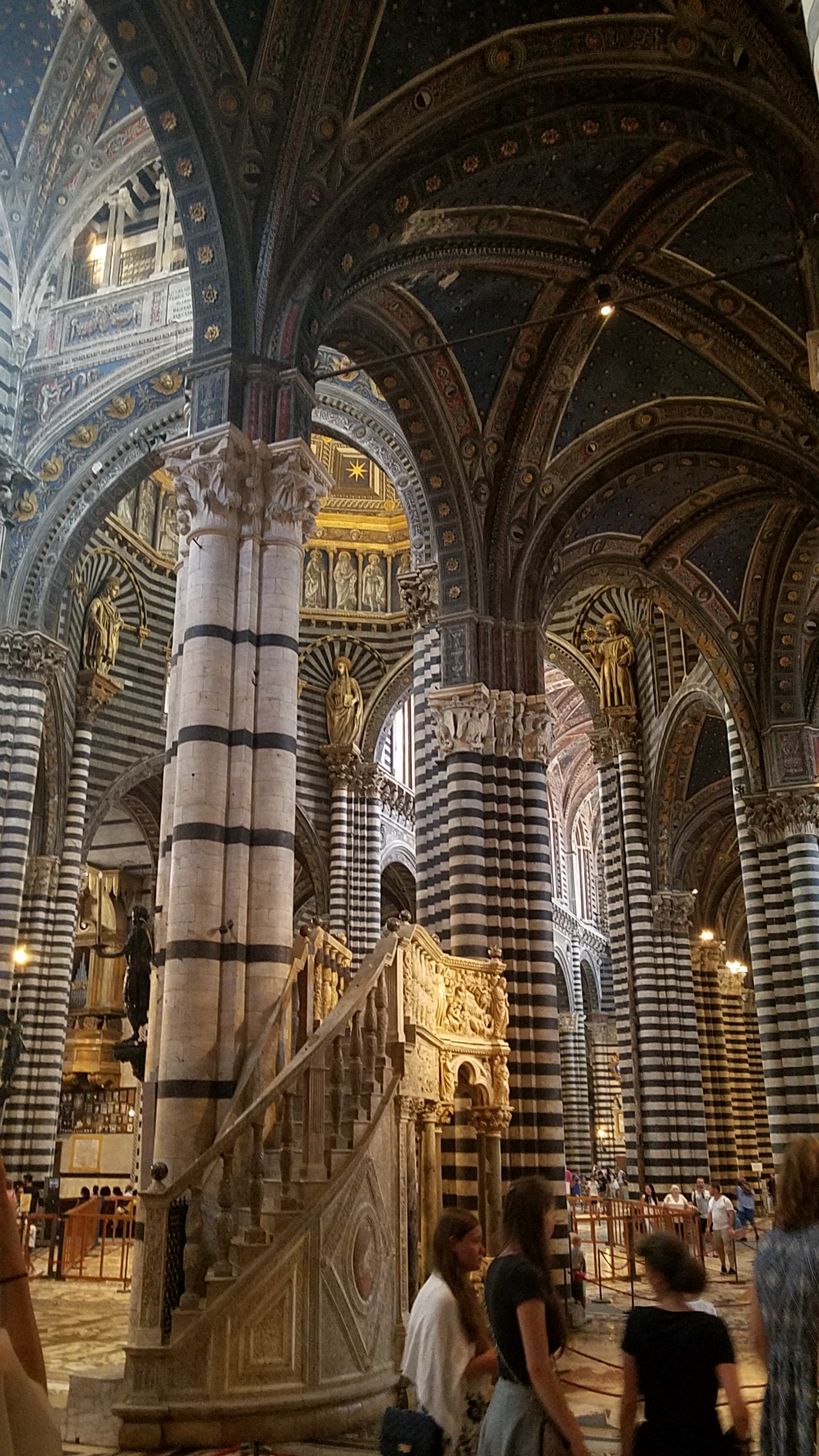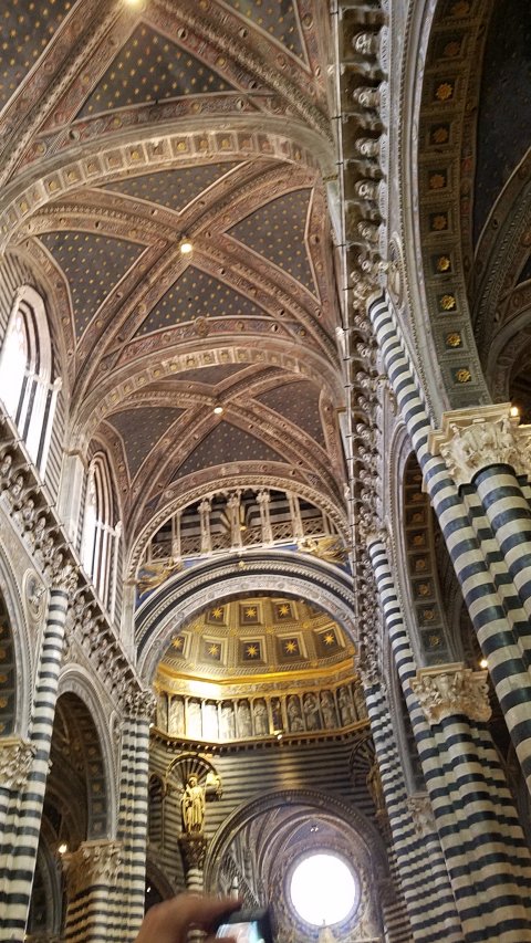 I’m not especially into medieval art or church art, but it’s impossible to be in Siena and not be in awe of both. Its big cathedral is the sort of place you enter and immediately think “Wow!”—which isn’t very articulate but certainly expresses the overwhelming nature of the ornate and yet never-too-busy harmony of its decorative abundance.