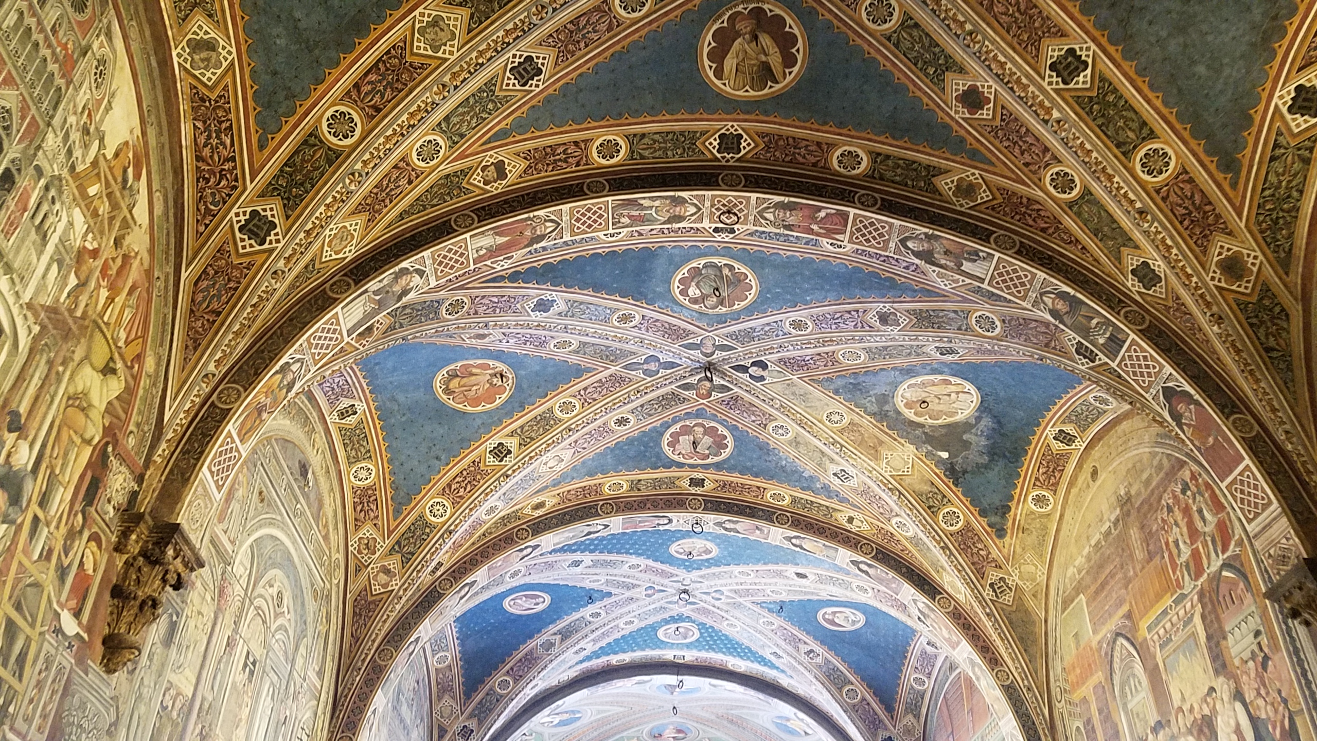And the ceilings are no slouch, either. So without further ado, here are a couple of photos I took of floor, ceiling, and in-between, as well as the ceilings of the old hospital building in Siena. It’s probably not like any hospital you’ve ever seen: