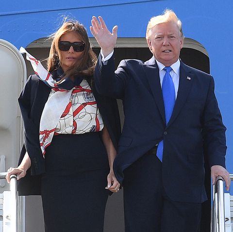 But actually, it turns out that Melania’s outfit wasn’t an homage to flight attendants (or stewardesses, to use the archaic term of my youth) after all. It was a tribute to Burberry, a British designer, during her visit to the UK. Plus another tribute, too.