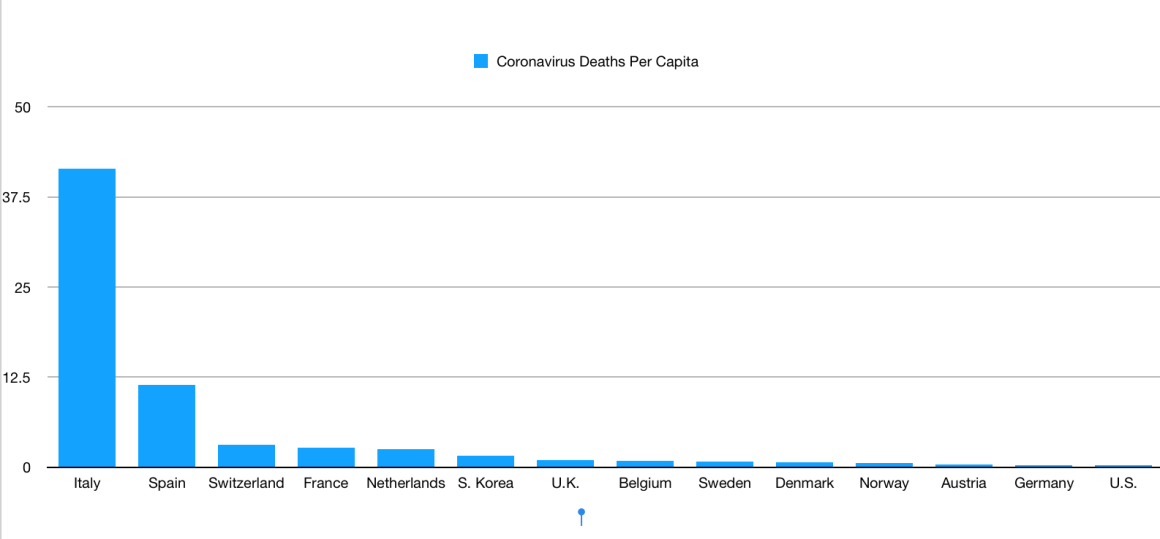 I would wager that most people who read this article come away convinced that South Korea’s aggressive testing approach has made all the difference, and the US has been negligent in not testing an equivalent number of people. I agree that the glitches in the development of the US testing kits – a manufacturing error, and then slowness involving bureaucratic red tape that needed cutting – has hampered our efforts. But has it actually made all that big a difference?