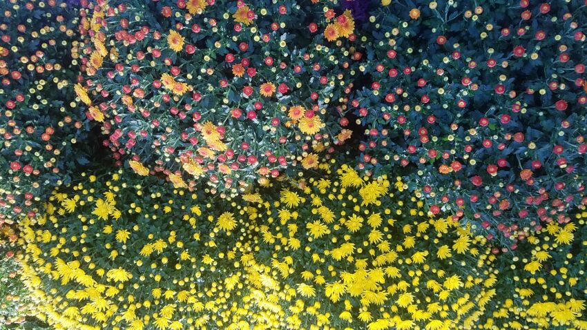 The mums look upside down, but they’re not. I stood over them to take the photo, and that’s what they looked like.