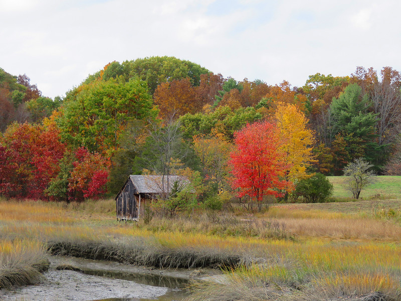 Meanwhile, fall is a tad delayed in New England, but it’s getting here. Columbus Day is traditional leaf-peeping time, and supposedly it’s arrived in the far north, so here’s a photo I took in years past: