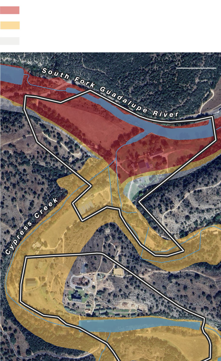 The Guadalupe there, like along much of its course, IS prone to floods because of the limestone formations that are so close to the surface. I grew up canoeing the Guadalupe & have fought my way through a flash flood like you describe in a canoe on the river north of New Braunfels…buckets fell upstream & the waterwall caught us before we could get to higher ground…so we paddled & prayed until we got to where we could get out.