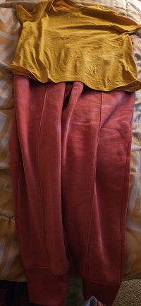 I wore this, made of two garments bought on sale at Walmart and T. J. Maxx. The ensemble was finished off by white socks and white sneakers. I bet you can guess what I was:
